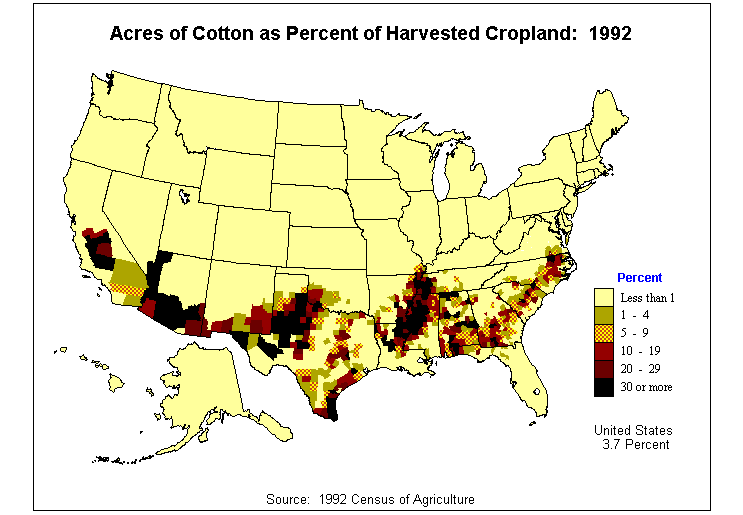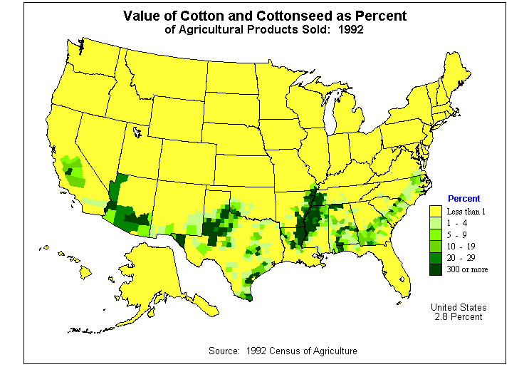 11. Value of Cotton and Cottonseed as Percent of Agricultural Products Sold: 1992?