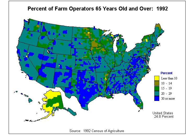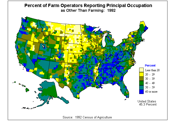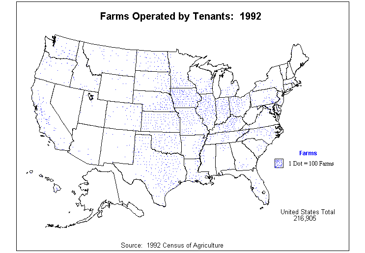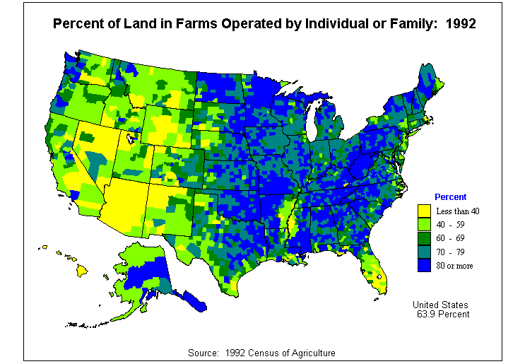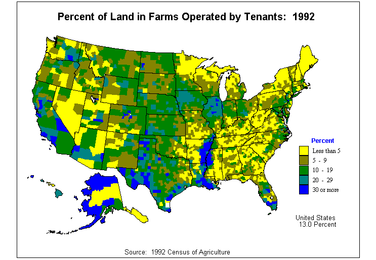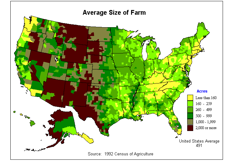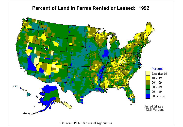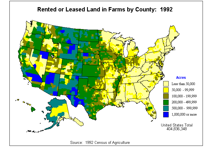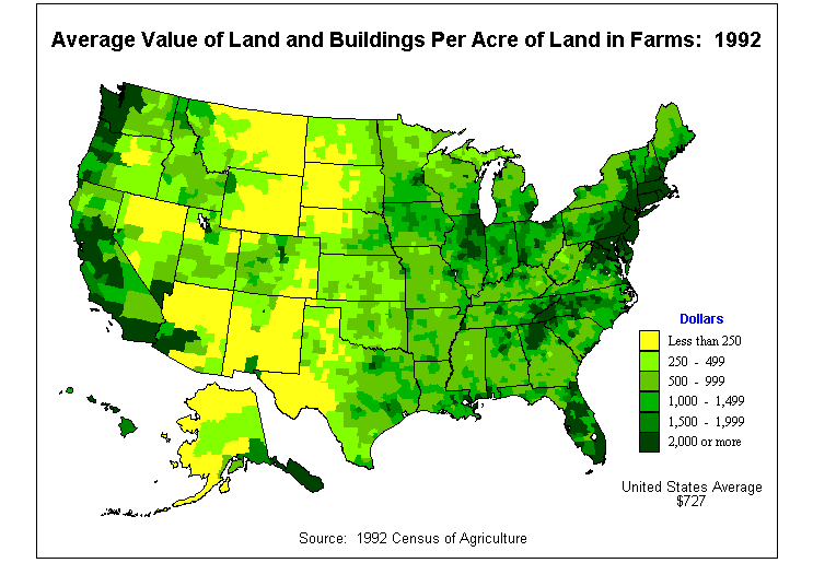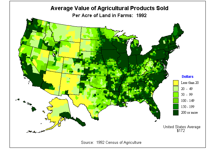 4. Average Value of Agricultural Products Sold Per Acre of Land in Farms: 1992?