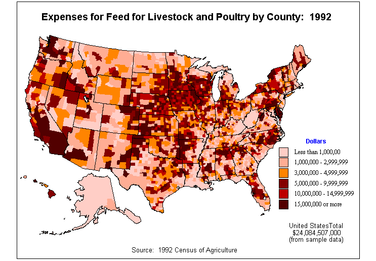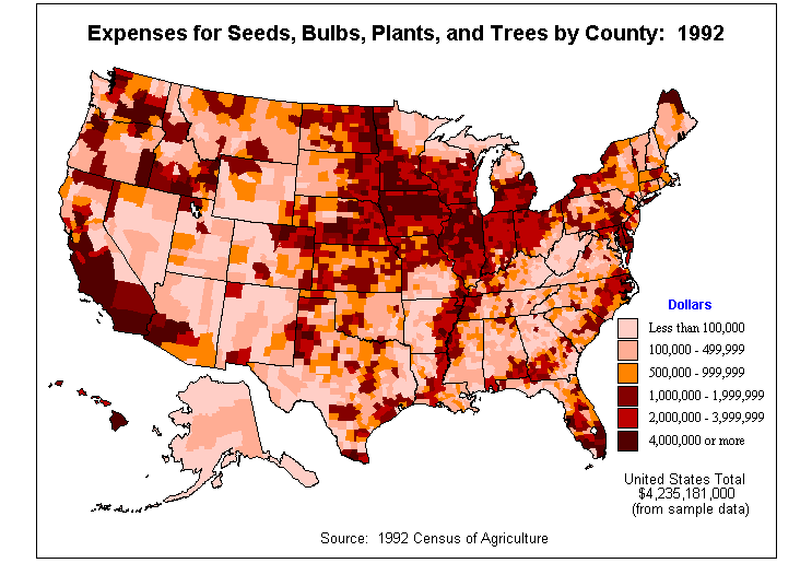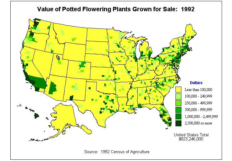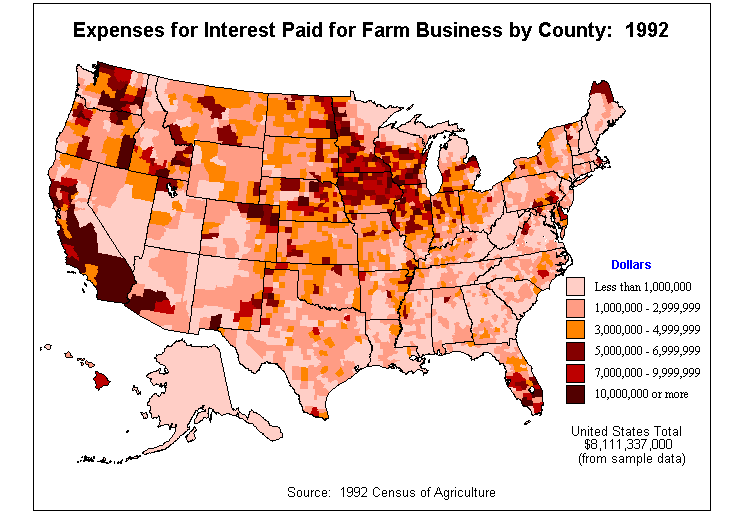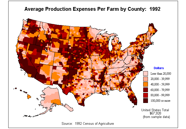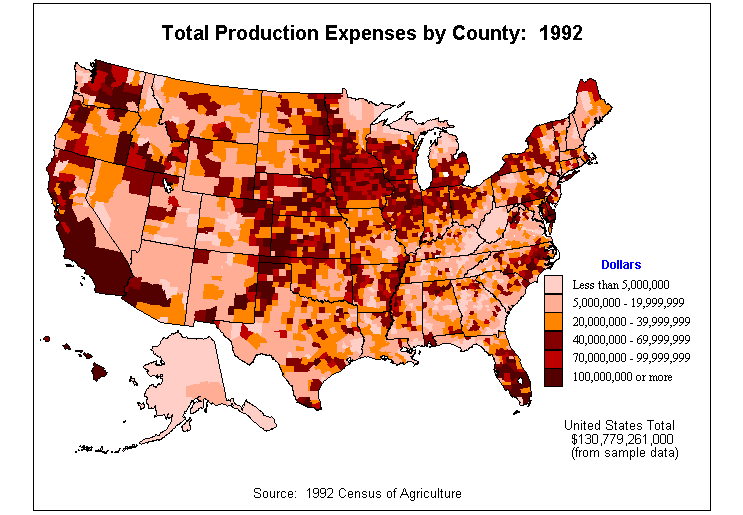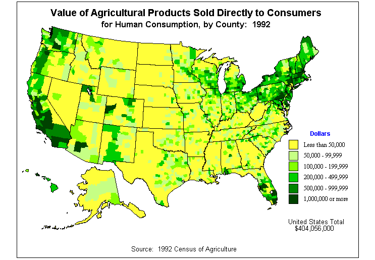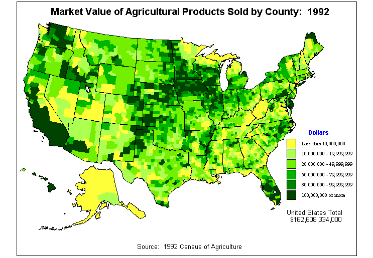 1. Market Value of Agricultural Products Sold by County: 1992