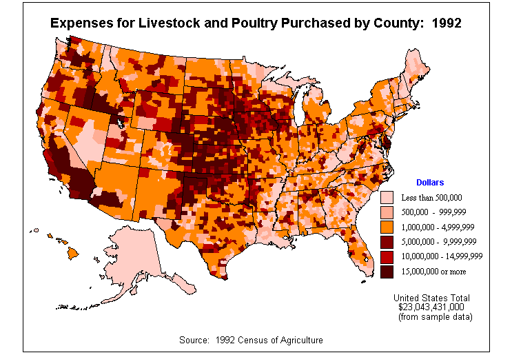 17. Value of Livestock, Poultry, and Their Products Sold: 1992