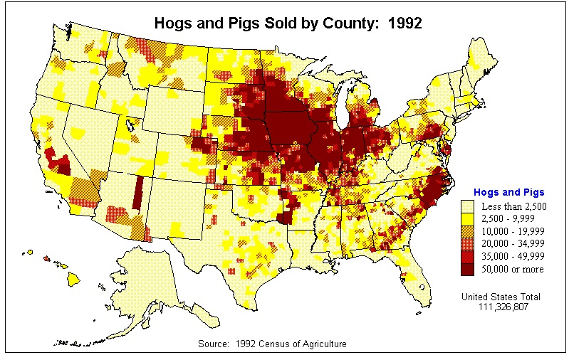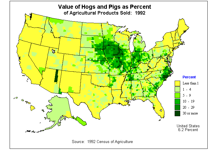 22. Value of Hogs and Pigs as Percent of Agricultural Products Sold: 1992?