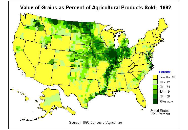 10. Value of Grains as Percent of Agricultural Products Sold 1992?