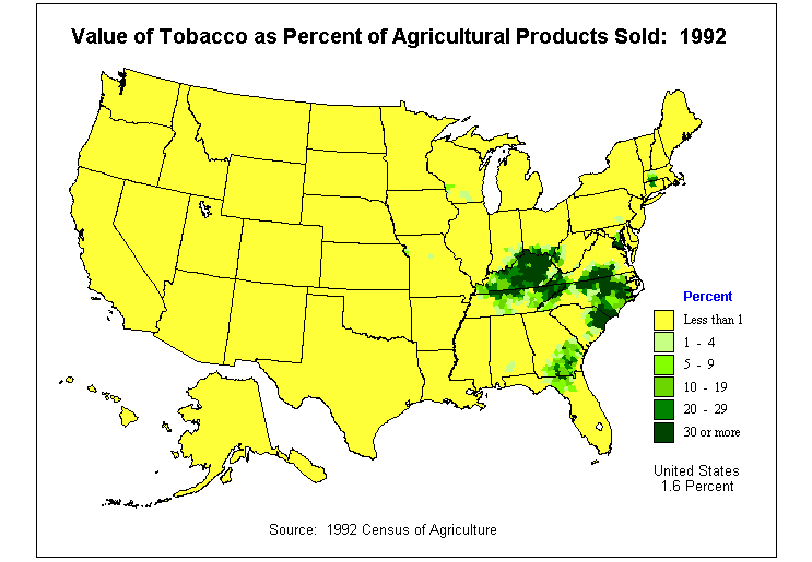 12. Value of Tobacco as Percent of Agricultural Products Sold: 1992?