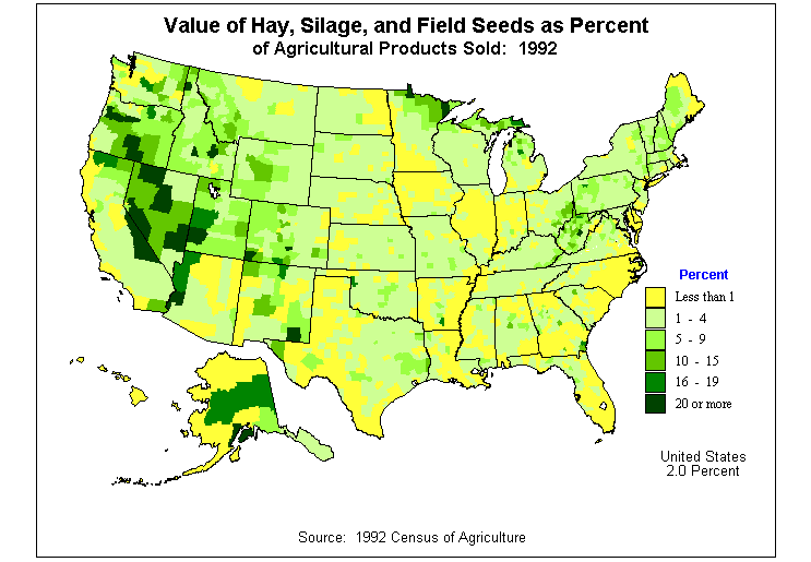 13. Value of Hay, Silage, and Field Seeds as Percent of Agricultural Products Sold: 1992?