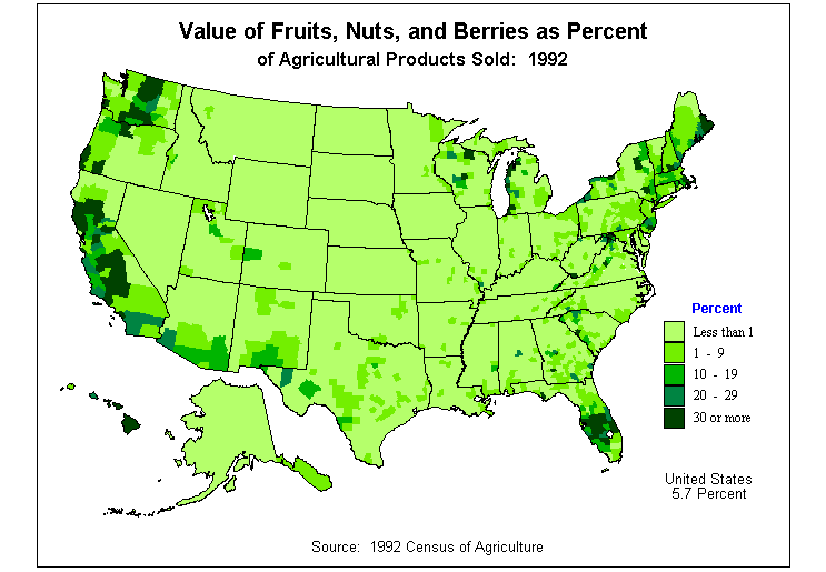 15. Value of Fruits, Nuts, and Berries as Percent of Agricultural Products Sold: 1992?