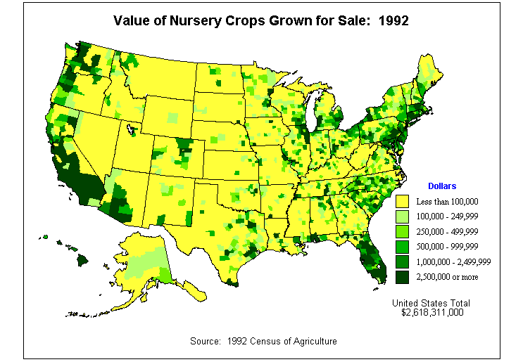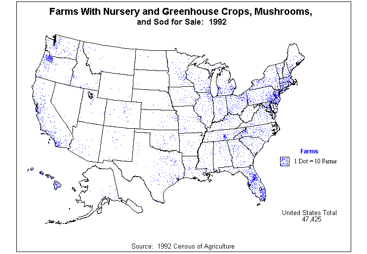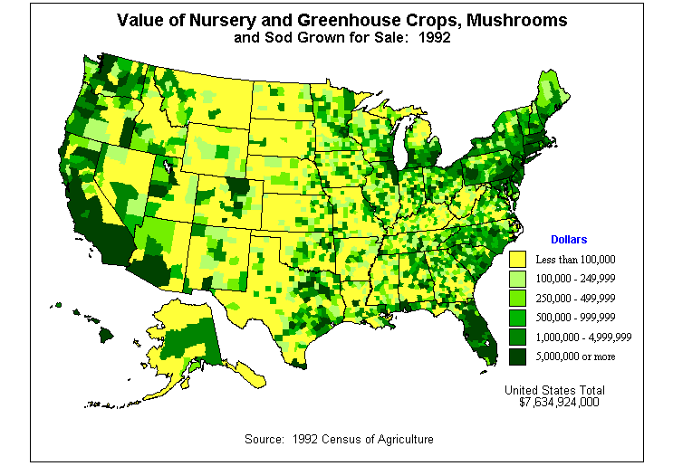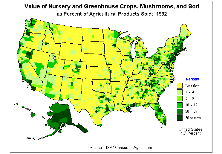 16. Value of Nursery and Greenhouse Crops, Mushrooms, and Sod as Percent of Agricultural Products Sold: 1992?