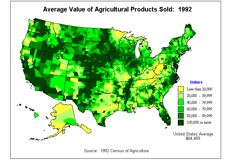 2. Average Value of Agricultural Products Sold: 1992?