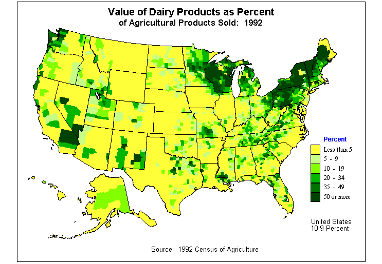 20. Value of Dairy Products as Percent of Agricultural Products Sold: 1992?