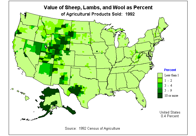 23. Value of Sheep, Lambs, and Wool as Percent of Agricultural Products Sold: 1992