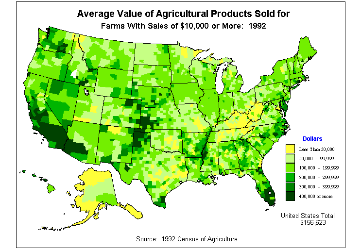 3. Average Value of Agricultural Products Sold for Farms With Sales of $10,000 or More: 1992?
