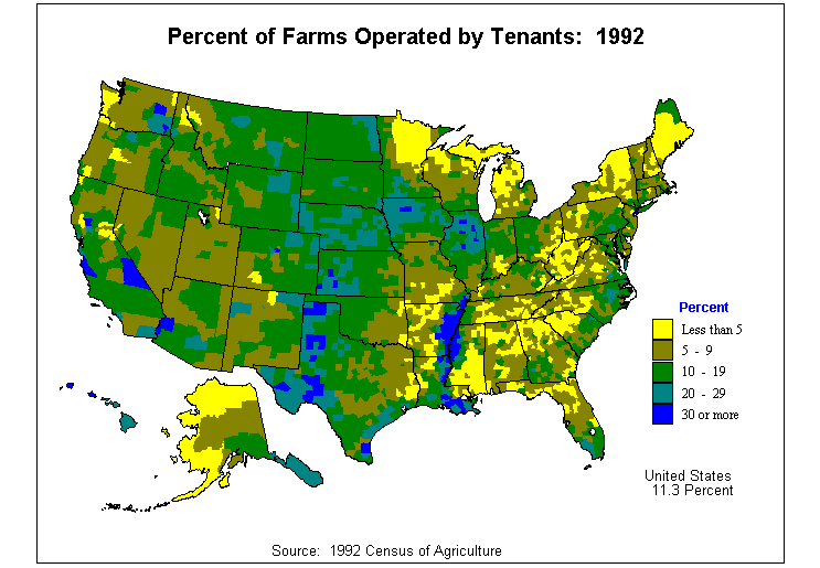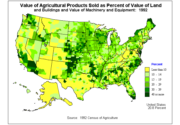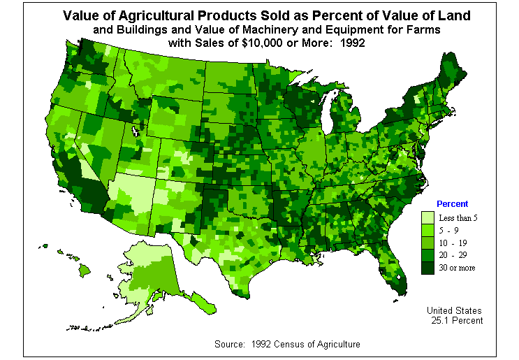 5. Value of Agricultural Products Sold as Percent of Value of Land and Buildings and Value of Machinery and Equipment: 1992?