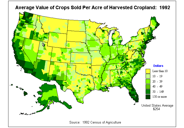 9. Average Value of Crops Sold Per Acre of Harvested Cropland: 1992?
